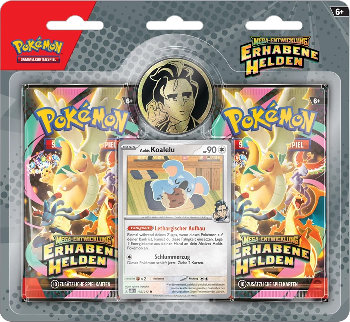 The Celadon City Gym, led by Gym Leader Erika, is filled with beautiful greenery and Grass-type Pokémon galore. Visitors to Medali in the Paldea region have the chance to battle Gym Leader Larry and his Normal-type Pokémon. In this collection, you’ll find a promo card featuring either Erika’s Tangela or Larry’s Komala, a metallic coin featuring your chosen Gym Leader, and two booster packs from the special Mega Evolution Ascended Heroes expansion.
